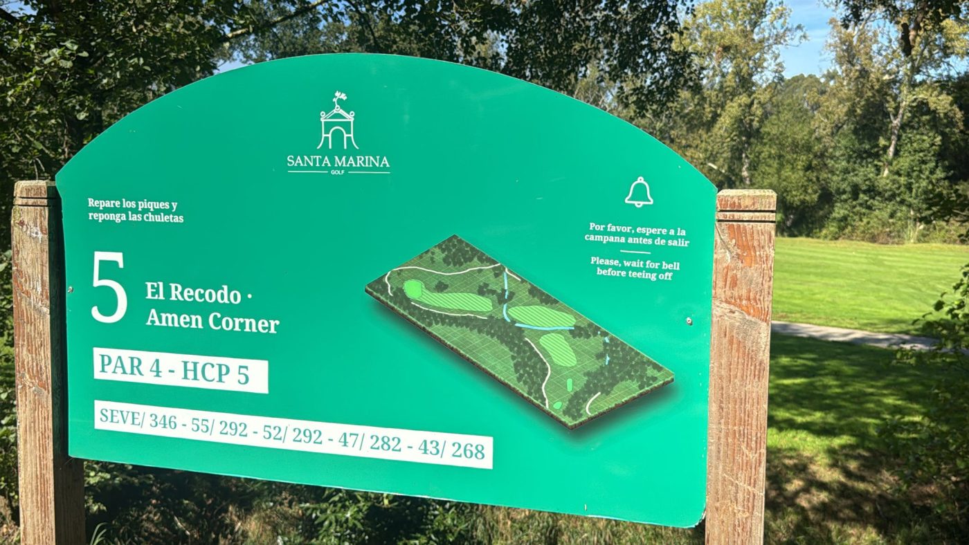 Como parte de las medidas de seguridad en el recorrido, en Golf Santa Marina se han instalado campanas en los hoyos 5, 9 y 16. Estas campanas cumplen una función clave: avisar a los jugadores que esperan detrás de que pueden realizar su golpe con seguridad.